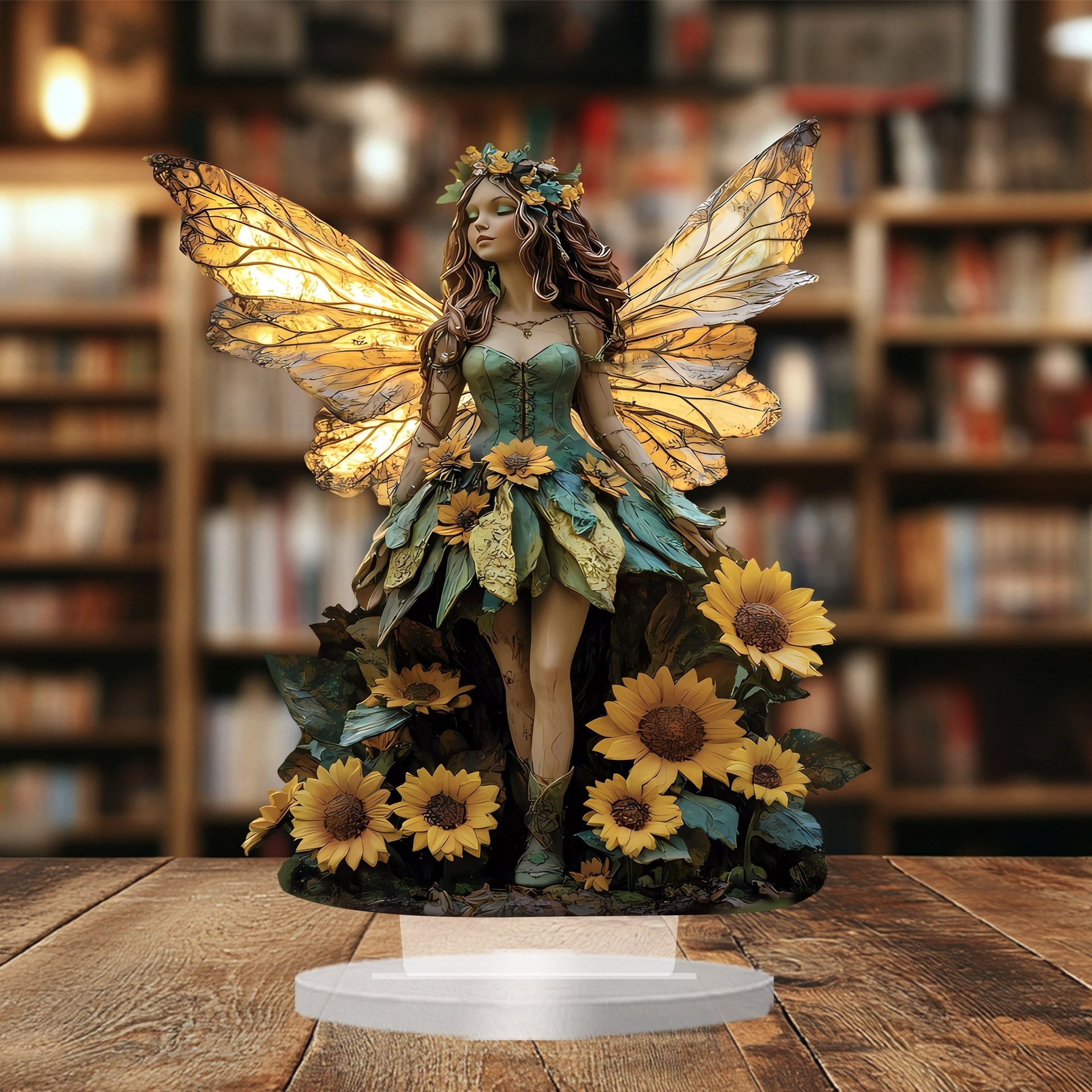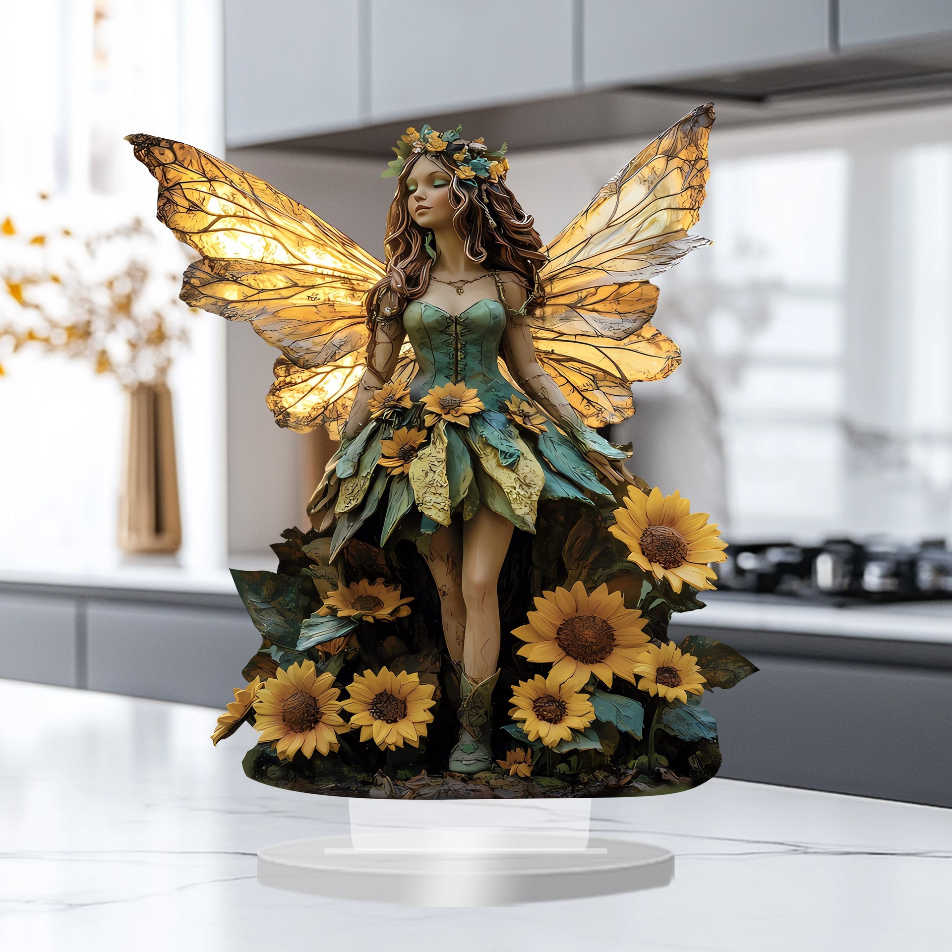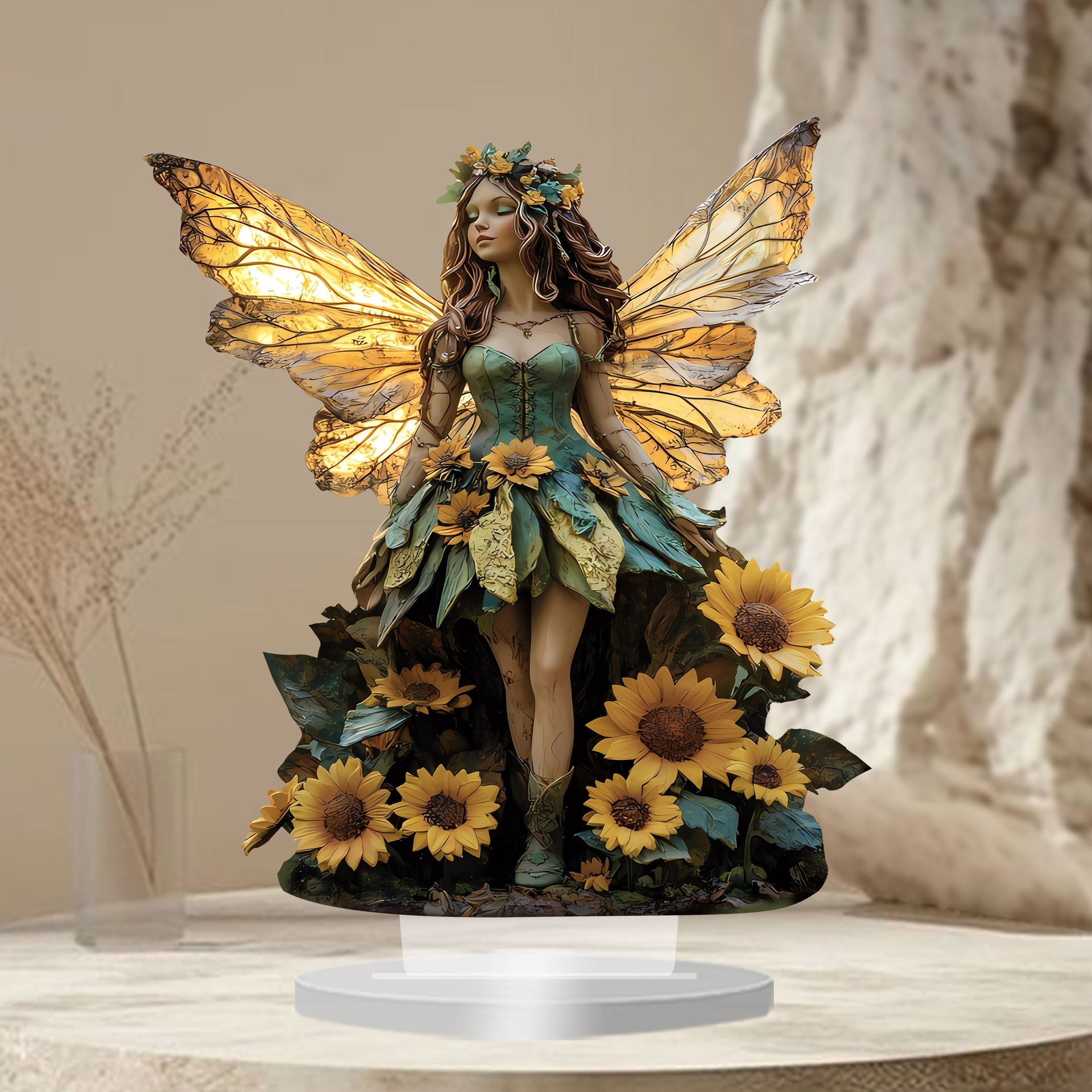 Bohemian Sunflower Fairy Acrylic Statue Ornament – Home, Office & Bedroom Decor
