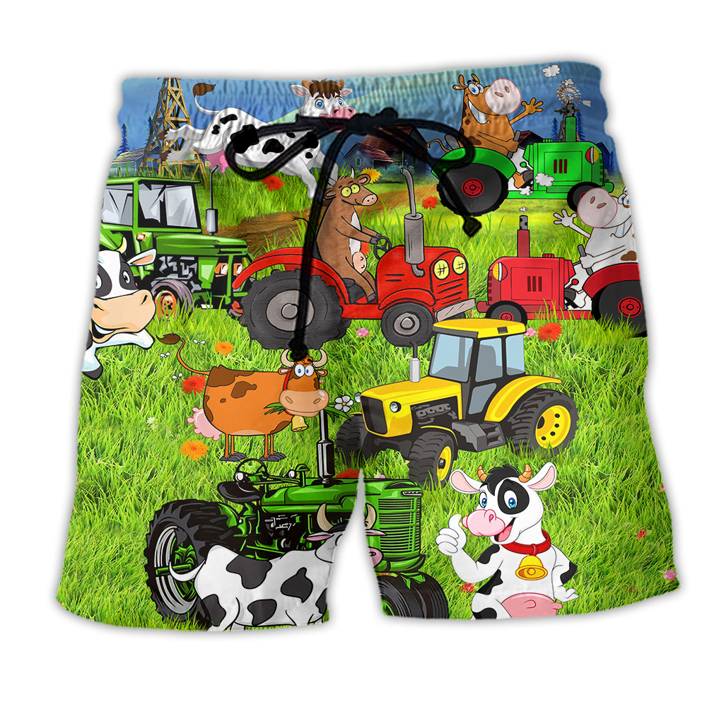 Cow Happy Everyday With Life - Beach Shorts - Owl Ohh