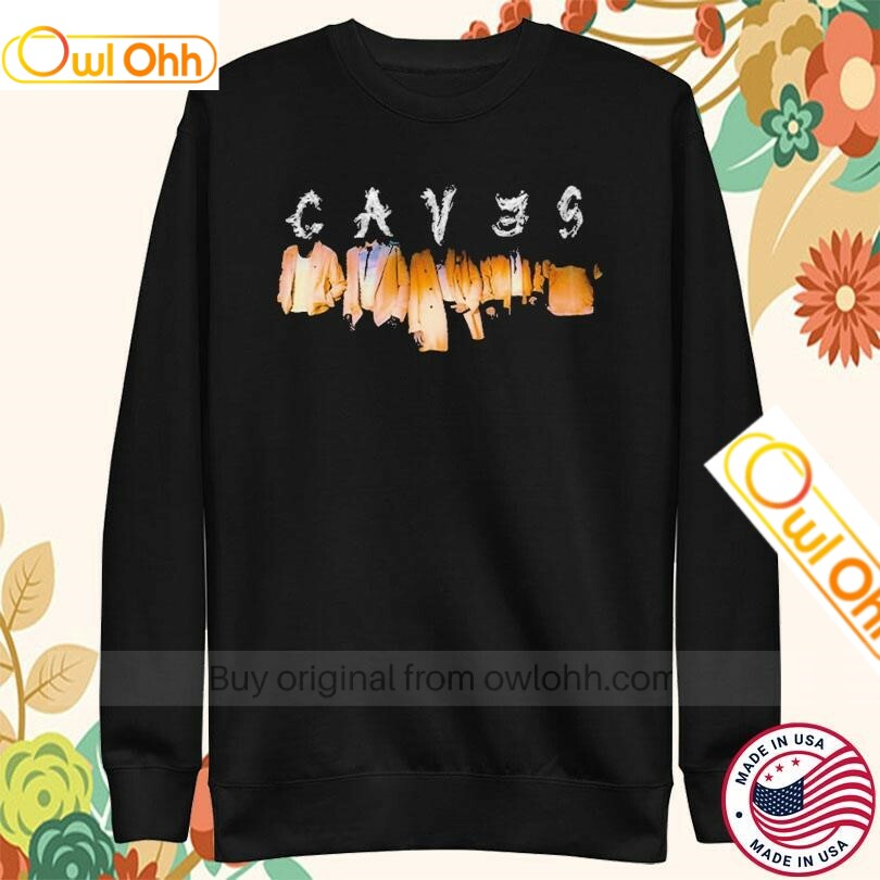 The “Caves” album explores themes of isolation, longing, and the transformative power of human connection. The album’s cover art depicts a cave opening, symbolizing refuge and the journey of self-discovery. Our T-shirts showcase this artwork in vibrant colors, allowing you to embrace these profound concepts through fashion.