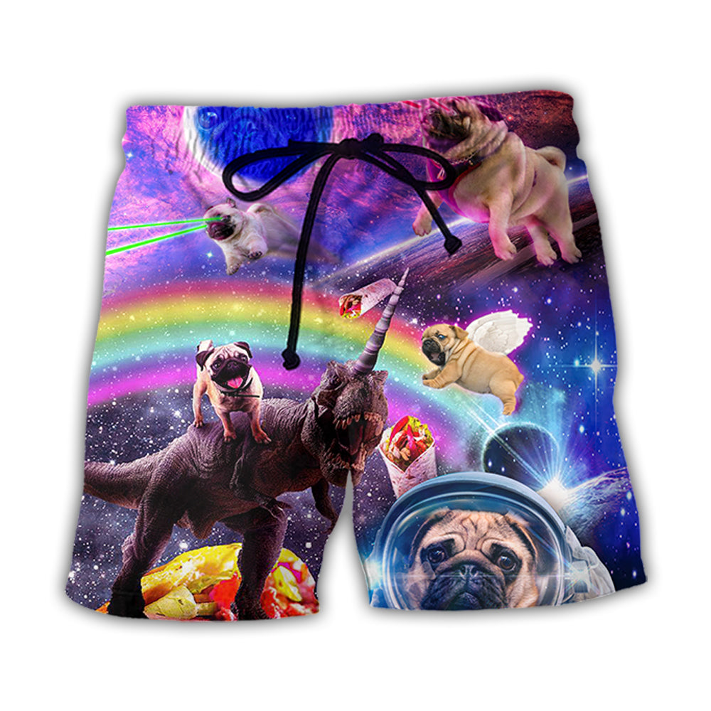 Pug Dog Galaxy Rainbow Star T-Rex Style - Beach Shorts - Owl Ohh